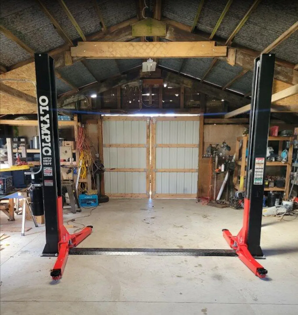 Model: Olympic 2PBP-10 / 10,000‐lb. Base Plate 2-Post Lift / Dual Point Lock Release / 2-Stage Arms / 2-Stage Foot Pads / 110″ H X 130″ W / 10-Year Warranty / SHIPS FREE!